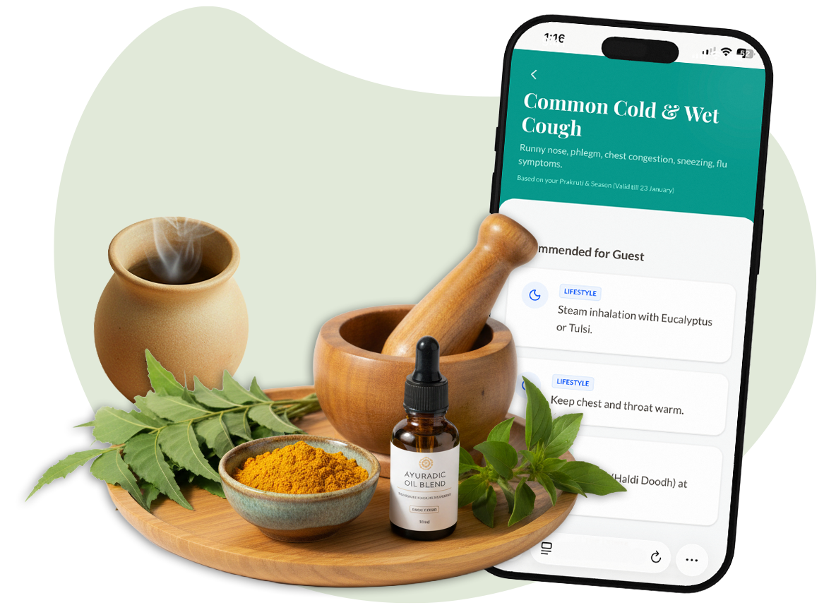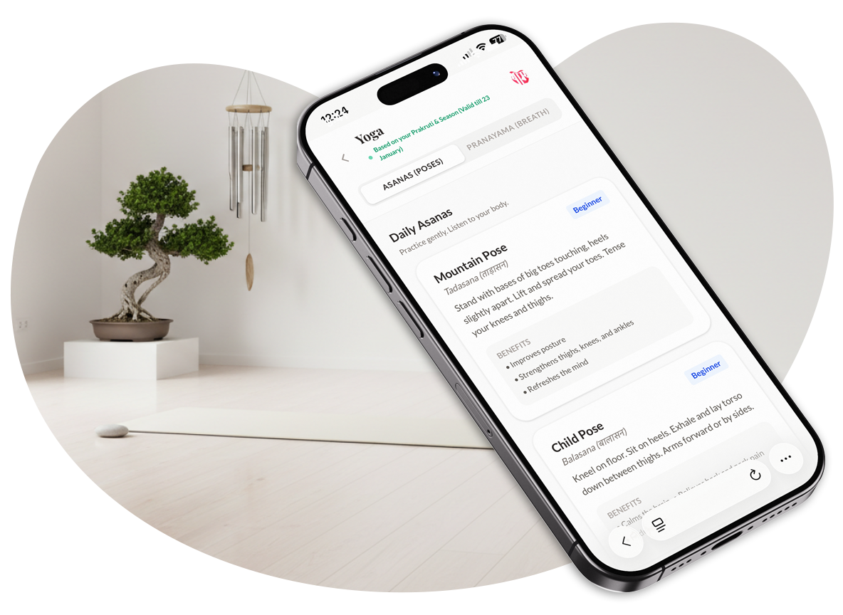 Modern life is full of generic health advice. Ayurveda offers something different: guidance specific to you. Your body, your rhythms, your seasons. Yogya brings this wisdom to your pocket, privately and for free.