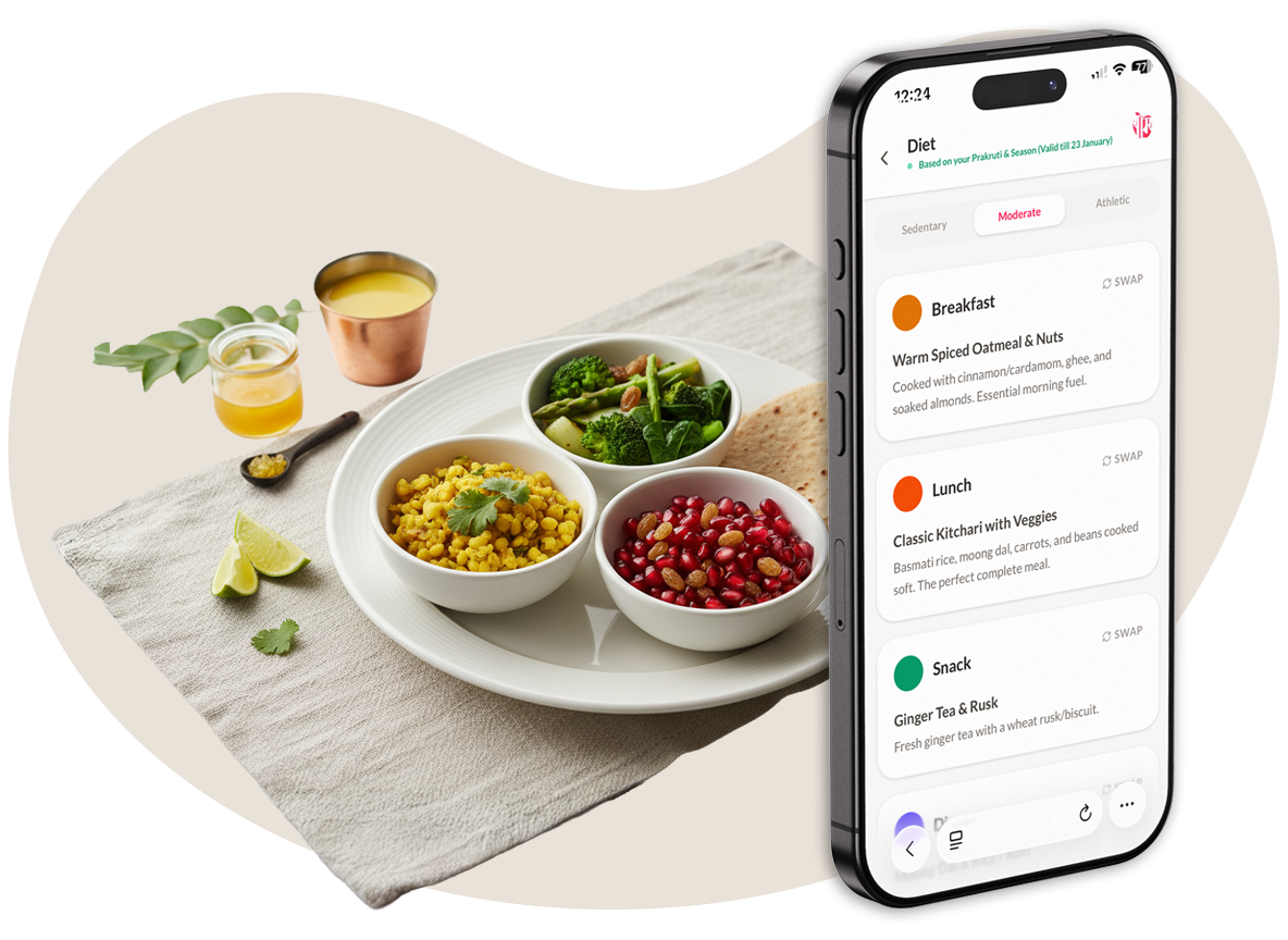 A personalized meal guide that changes with the season and your constitution. No strict diets, just the right foods at the right time.